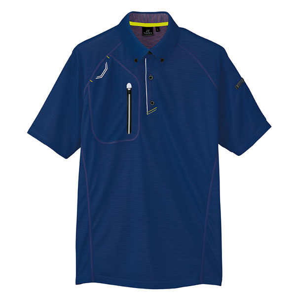 アイトス HERO’S UNIFORM 半袖ボタンダウンポロシャツ(男女兼用) ネイビー M AZ-10605-008-M(直送品)