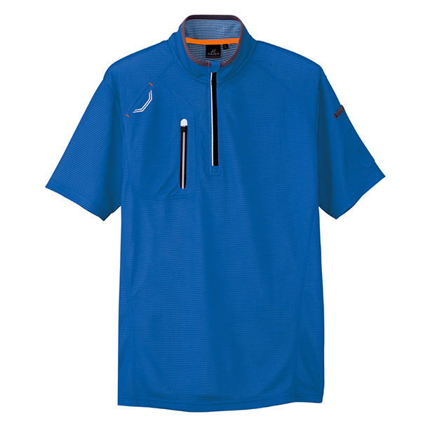 本商品:アイトス HERO’S UNIFORM 半袖ハーフZIPシャツ(男女兼用) ロイヤルネイビー M AZ-10607-006-M(直送品)