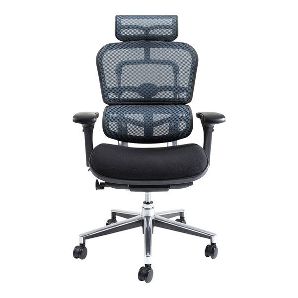 【組立設置込】エルゴヒューマン ベーシック ハイタイプ 背メッシュ ブルー 座モールドクッション ブラック 独立式ランバーサポート付 可動肘付 1脚(取寄品)