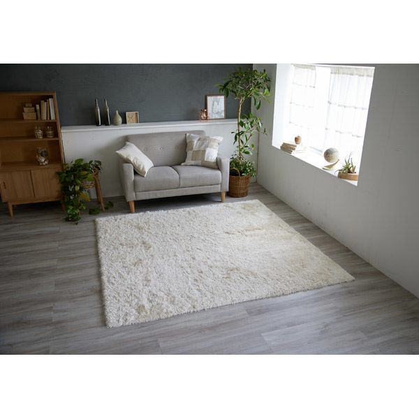 上品な光沢感のある、サラサラとした肌触りが良いシャギーカーペットです。光沢の映えるベーシックなグレイッシュトーンでまとめました。シャギーなのに洗えます。