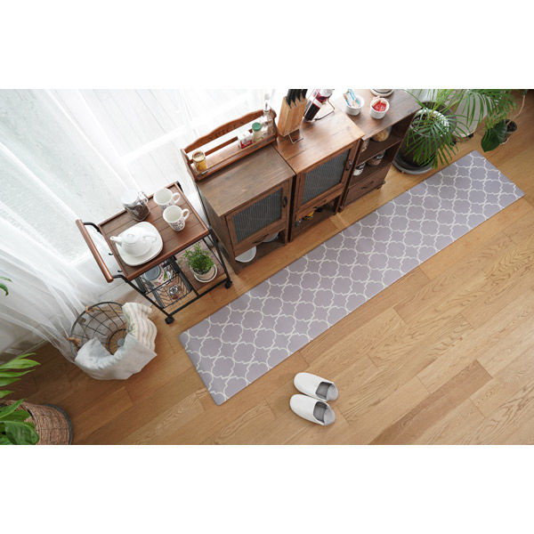 | 商品の特徴 | 楽しいキッチンを想像しながら作ったこだわりの北欧デザイン。汚れたら差っとひと拭き、洗濯しなくてもすぐにきれい、ソフトな踏み心地なのにクッション性も感じられて足への負担も軽減。裏面はすべりにくく安心です。 | ||