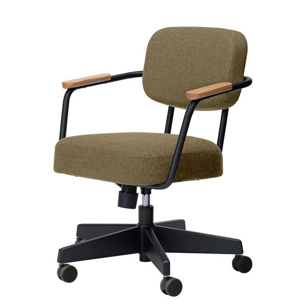 | 材質 | 本体:φ22.2スチールパイプ・焼付塗装、背座:モールドウレタン、肘:レッドオーク材・ウレタン塗装、脚部:スチール・焼付塗装・φ60ナイロンキャスター、張地:ドビー織ファブリック・ポリエステル100% | カラーグループ | ベージュ系 |