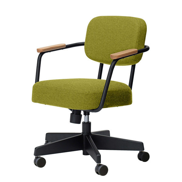 | 材質 | 本体:φ22.2スチールパイプ・焼付塗装、背座:モールドウレタン、肘:レッドオーク材・ウレタン塗装、脚部:スチール・焼付塗装・φ60ナイロンキャスター、張地:ドビー織ファブリック・ポリエステル100% | カラーグループ | グリーン系 |