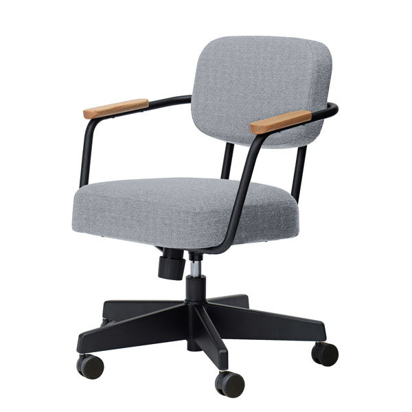 | 材質 | 本体:φ22.2スチールパイプ・焼付塗装、背座:モールドウレタン、肘:レッドオーク材・ウレタン塗装、脚部:スチール・焼付塗装・φ60ナイロンキャスター、張地:ドビー織ファブリック・ポリエステル100% | カラーグループ | グレー系 |