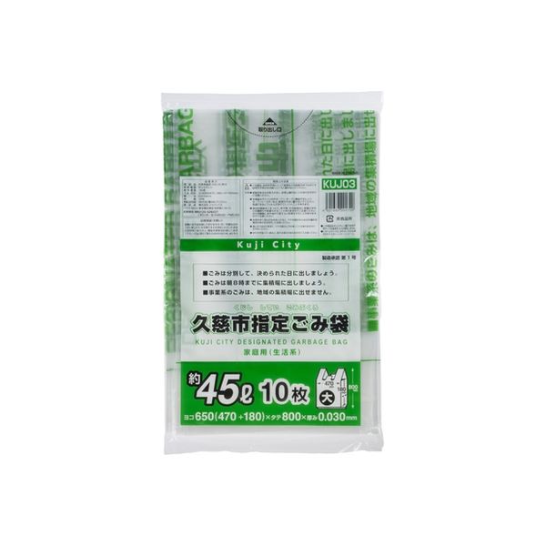 ジャパックス 岩手県久慈市指定 45L(大)手付 10枚 KUJ03 1ケース(400枚入:10枚×40冊)(直送品)