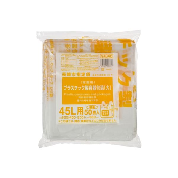 ジャパックス 長崎県長崎市 容器包装(大)45L 手つき NAG46 1セット(600枚:50枚×12冊)