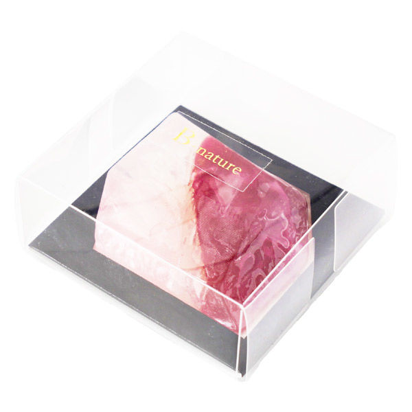 | 商品の特徴 | 透明感とカラーの濃淡によってグラデーションを演出。ラメをプラスして、まるで宝石のようにきらめく石けんはギフトや自分へのご褒美として。すべてハンドメイドで製造されています。植物性のグリセリンを使用し、しっとりなめらかな肌へ整えます。【香り】ロイヤルレモンティ:レモンの清涼感に、上品でほのかにティーの甘さを感じる。【石言葉】ルビー:「活力・繁栄」情熱の象徴とされ自信や勇気を持って物事を成し遂げるパワーをくれます。燃え盛る炎のようなルビーの赤は、前へ進む情熱や勇気をサポート。 | ||