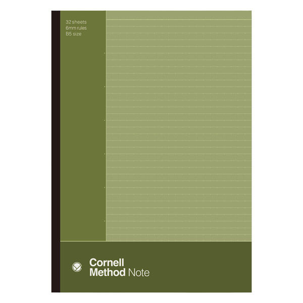 | 商品の特徴 | 書くだけで情報整理が簡単にできるコーネルメソッドノート。コーネルメソッドノートは1950年代にアメリカの名門コーネル大学の教授によって開発されたノートシステム。ノートエリア・キーワードエリア・サマリーエリアの3のエリアに区切られていて簡単に情報整理ができるのが特長。B罫に6mmごとのドットが打ってあるので表作成などにも便利!書きやすい、見やすいレイアウトです。 | ||