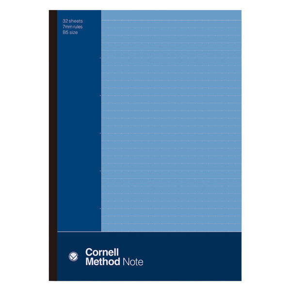 | 商品の特徴 | 書くだけで情報整理が簡単にできるコーネルメソッドノートに幅広で書きやすいA罫(7mm)。コーネルメソッドノートは1950年代にアメリカの名門コーネル大学の教授によって開発されたノートシステム。ノートエリア・キーワードエリア・サマリーエリアの3のエリアに区切られていて簡単に情報整理ができるのが特長。A罫に6mmごとのドットが打ってあるので表作成などにも便利なレイアウト。 | ||