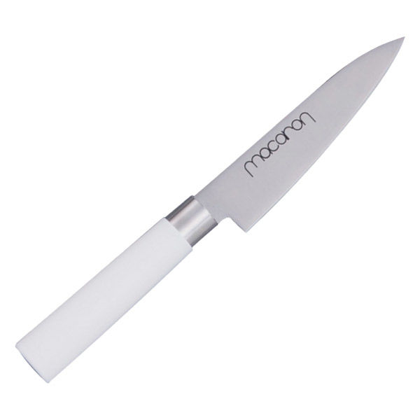 | 商品の特徴 | ペティナイフ 刃渡り12cmです。 程よい重量感で握りやすいホワイト色のハンドルは、清潔感があります。 どんなキッチンにも溶け込むやさしい雰囲気が自慢のMACARONシリーズです。 | ||