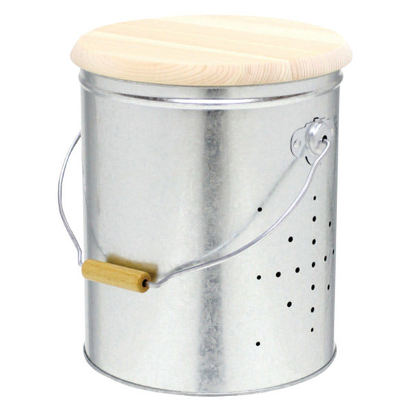 | 商品の特徴 | 野菜の保存に適した国産の最高級トタン材を使用した、オバケツの「野菜ストッカー小」です。 収納量は約4.4kg、じゃがいもなら約30個が入る程度です。 通気用の小さな穴が開いているので、湿気がこもらず風通し良く保管できます。 蓋には艶のある美しい木目が特長の「東濃ひのき」を使用しています。 木の香り成分である「フィトンチッド」が酸化を防止し、消臭・防虫からも守ります。 蓋裏にはフックがついており、本体の縁に引っ掛けられます。 木製のハンドル付きなので重くなっても持ちやすく、手に優しくフィットします。 | ||