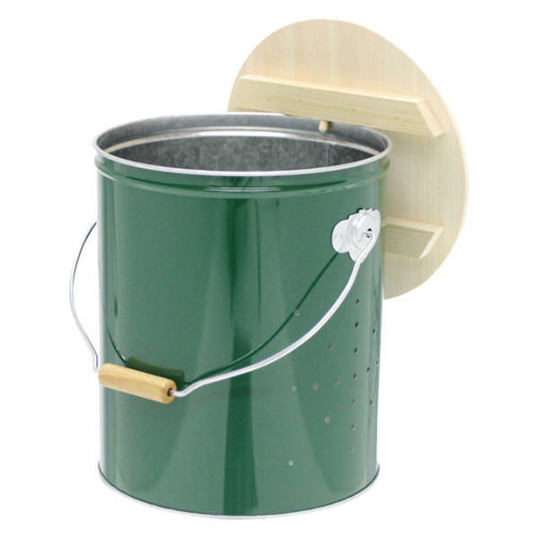 | 商品の特徴 | 野菜の保存に適した国産の最高級トタン材を使用した、オバケツの「野菜ストッカー小」です。 収納量は約4.4kg、じゃがいもなら約30個が入る程度です。 通気用の小さな穴が開いているので、湿気がこもらず風通し良く保管できます。 蓋には艶のある美しい木目が特長の「東濃ひのき」を使用しています。 木の香り成分である「フィトンチッド」が酸化を防止し、消臭・防虫からも守ります。 蓋裏にはフックがついており、本体の縁に引っ掛けられます。 木製のハンドル付きなので重くなっても持ちやすく、手に優しくフィットします。 | ||