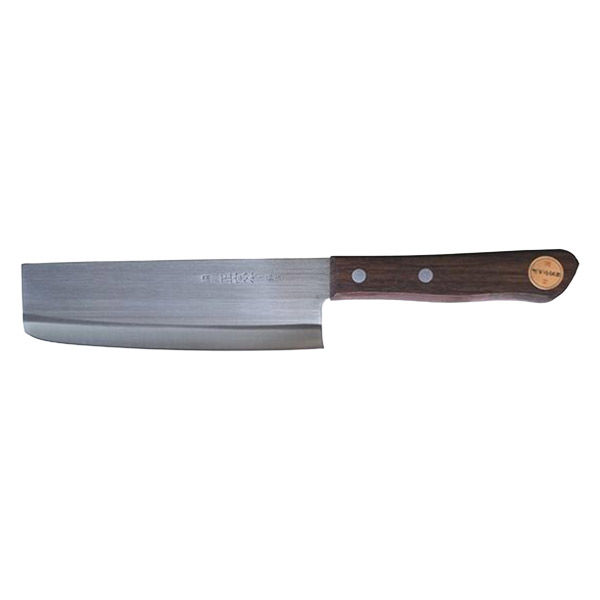 | 商品の特徴 | 刃渡り16.5cmの菜切り包丁です。 刃は薄く幅広く、切っ先は四角くなっていてとがっていないため、大根や白菜などの大きな野菜も切りやすくなっています。 刃物産業の盛んな岐阜県関市の刃物で、錆びに強い特殊ステンレス鋼を採用しています。 使えば使う程手に馴染む木製ハンドルを採用しています。 研ぎなおしができ、長くお使い頂けます。 | ||