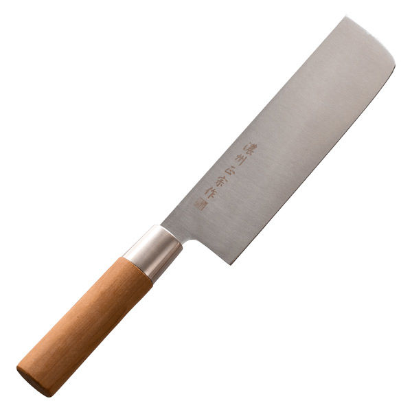 | 商品の特徴 | 刃渡り16cmの菜切包丁です。 刃は薄く幅広く、切っ先は四角くなっていてとがっていないため、大根や白菜などの大きな野菜も切りやすくなっています。 使えば使う程、手に馴染む天然木のハンドルを採用しています。 錆びに強く、お手入れが簡単でご家庭で扱いやすいステンレス刃です。 研ぎ直しができるので、長くお使い頂けます。 刃物産業の盛んな岐阜県関市の刃物です。 | ||