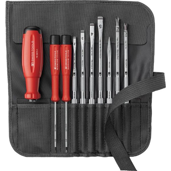 ピービースイスツールズ 差替式ドライバーセット 9本組 ブラックロールアップケース付 38218.BK 1セット(直送品)