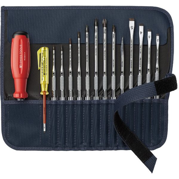 ピービースイスツールズ 差替式ドライバーセット 14本組 グレーロールアップケース付 38222.GY 1セット(直送品)