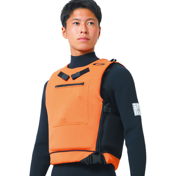| 商品の特徴 | 今期オンズが水辺の安全のために提案する新ジャケットです。広い海でも目立つように全体をオレンジにし背中には反射板も取り付けました。フロントサイドにはスマホも入れられるサイズのポケットを付け、緊急時に周りに知らせるためのホイッスルも付属させた安全に配慮したジャケットです。 | ||