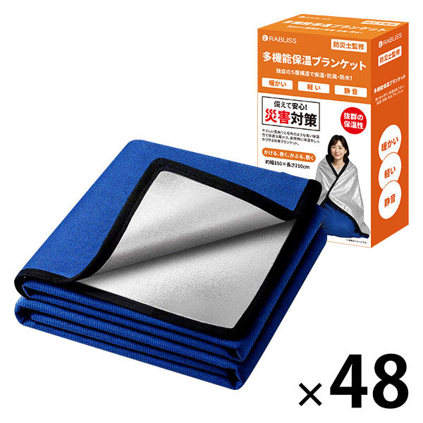 多機能 保温ブランケット 48個/ケース 防災グッズ リバーシブル 5層構造 ブランケット 収納袋付 毛布 KO411 RABLISS(直送品)