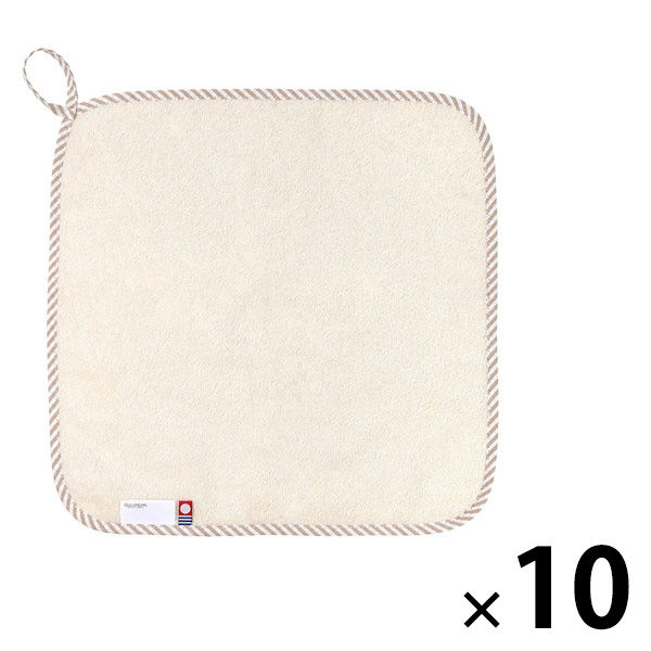 今治製 ループつきハンドタオル ベージュ 1セット(1枚×10) 国産 ノベルティ 個包装 ご挨拶 子ども用 キッチン用 田中産業