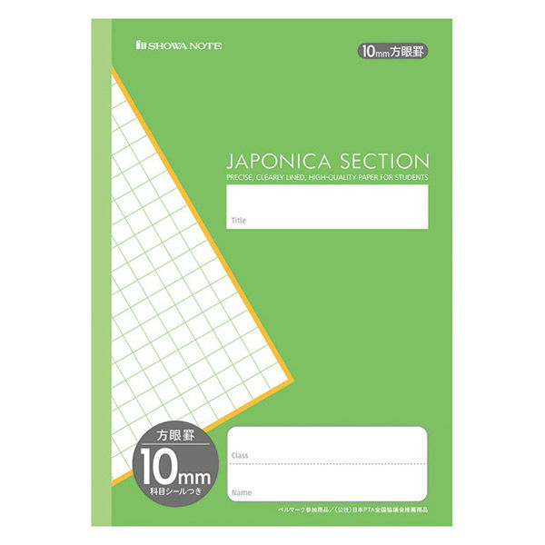 | 商品の特徴 | 全科目に対応した10mm方眼罫ノート。●科目シール付き。【使う子供たちのことを考えた工夫がいっぱい】1.科学データに基づく書きやすい罫色。2.ノートの紙は鉛筆で書きやすい紙を使用。3.ベルマーク運動参加商品。4.日本PTA全国協議会推薦商品。 | ||
