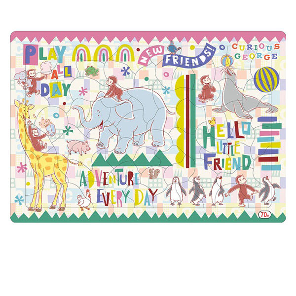 | 商品の特徴 | おさるのジョージのB4サイズの70ピースの板パズル。裏面はクレヨンを使って遊べるお楽しみボードつき。 | ||