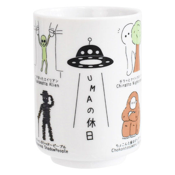 | 商品の特徴 | ゆるーいUMA(未確認生物)のデザインされた寿司湯呑です。 手に収まりやすい280mlです。 個性的でゆるゆるデザインの【YURU-MA】(ユルーマ)シリーズです。 電子レンジ・食洗機に対応しています。 | ||