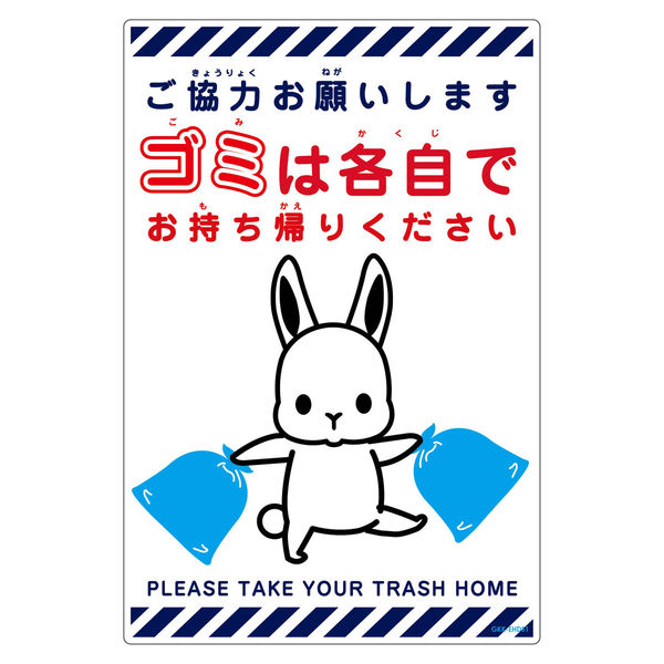 | 商品の特徴 | ●ゴミは各自持ち帰り標識は、各自で出したゴミを持ち帰っていただくように、注意をうながす標識です。●ゴミ箱を設置していない場所や施設、ゴミを捨ててはいけない所での注意喚起に最適です。●視認性が高く、目にとまりやすいデザインやカラーです。●設置する場所などに応じて、サイズや材質をお選び頂けます。 | ||
