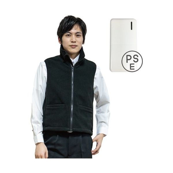 岡潮 黒色フリース発熱ベスト+モバイルバッテリー10,000mAhセット 4L OK40216-4L 1式 629-5247(直送品)