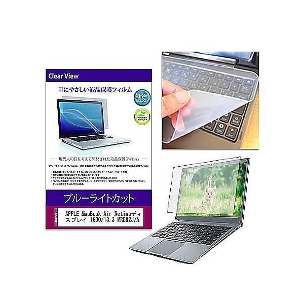 - ●シリコン製キーボードカバーの特徴、耐久性・復元性・耐裂性に優れたシリコン素材を採用。耐熱・耐寒性も高く、幅広い環境でご使用いただけます、厚さ約0.3mmの薄型タイプ。微粘着性があるため、キーボードに直接貼り付けて使用可能です、付属の両面テープを使用すれば、よりしっかりと固定して快適にご利用できます、ホコリや水滴などからキーボードを保護し、清潔な状態を長くキープ、キータッチの良さを損なうことなくホコリや汚れからキーボードを保護します。●●液晶保護フィルム特徴、ブルーライトカットフィルムは、画面から発せられるブルーライトから眼を守り、眼の負担を軽くします、LED光源の中間波長帯の光を抑える設計で、自然な色合いを保ったまま、画面を見やすく保ちます、高透過率仕様により、画面の明るさや視認性を損なうことなく快適にご使用いただけます、表面には指紋防止加工を施しており、タッチ操作時も指紋がつきにくくなっています、表面硬度に優れ、キズや汚れから液晶画面をしっかり保護します。●適合機種:MacBookAirRetina1600/13.3MRE82J/A●対応インチサイズ:13.3インチ解像度(2560x1600)●キーカバーサイズ(mm):365x145●厚み(mm):0.3●フィルム特性:ブルーライトカット光沢●内容量:1枚●付属品:両面テープ、クリーニングクロス、ヘラ●●【ご購入前の注意点】機器本体は付属しておりません、キーボード部分(キータッチ部分)のみをカバーするタイプで、タッチパッド等はカバーいたしません、指紋認証機能には対応いたしません、保護フィルムは液晶画面表示領域のみをカバーする仕様です。画面全体をカバーする仕様ではございません、貼り付け時は液晶画面を強く押さえず、丁寧に作業してください、貼付前にサイズの確認と位置合わせを行い、剥離フィルムは一度に全て剥がさず、少しずつ剥がして貼り付けてください、ホコリや汚れが残っていると気泡の原因になりますので、必ず画面を清掃してからご使用ください。●記載された製品名やブランド名は、適合サイズの説明の便宜上使用しており、各社の商標または登録商標です。●当製品は互換品となります。公式メーカーが販売、製造するものではございません。純正品ではないことをご了承ください。