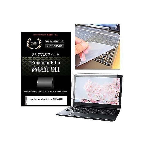 - ●シリコン製キーボードカバーの特徴、耐久性・復元性・耐裂性に優れたシリコン素材を採用。耐熱・耐寒性も高く、幅広い環境でご使用いただけます、厚さ約0.3mmの薄型タイプ。微粘着性があるため、キーボードに直接貼り付けて使用可能です、付属の両面テープを使用すれば、よりしっかりと固定して快適にご利用できます、ホコリや水滴などからキーボードを保護し、清潔な状態を長くキープ、キータッチの良さを損なうことなくホコリや汚れからキーボードを保護します。●●液晶保護フィルム特徴、ブルーライトカットフィルムは、画面から発せられるブルーライトから眼を守り、眼の負担を軽くします、LED光源の中間波長帯の光を抑える設計で、自然な色合いを保ったまま、画面を見やすく保ちます、高透過率仕様により、画面の明るさや視認性を損なうことなく快適にご使用いただけます、表面には指紋防止加工を施しており、タッチ操作時も指紋がつきにくくなっています、表面硬度に優れ、キズや汚れから液晶画面をしっかり保護します。●適合機種:AppleMacBookPro2022年版●対応インチサイズ:13.3インチ解像度(2560x1600)●キーカバーサイズ(mm):365x145●厚み(mm):0.3●フィルム特性:高硬度9H●内容量:1枚●付属品:両面テープ、クリーニングクロス、ヘラ●●【ご購入前の注意点】機器本体は付属しておりません、キーボード部分(キータッチ部分)のみをカバーするタイプで、タッチパッド等はカバーいたしません、指紋認証機能には対応いたしません、保護フィルムは液晶画面表示領域のみをカバーする仕様です。画面全体をカバーする仕様ではございません、貼り付け時は液晶画面を強く押さえず、丁寧に作業してください、貼付前にサイズの確認と位置合わせを行い、剥離フィルムは一度に全て剥がさず、少しずつ剥がして貼り付けてください、ホコリや汚れが残っていると気泡の原因になりますので、必ず画面を清掃してからご使用ください。●記載された製品名やブランド名は、適合サイズの説明の便宜上使用しており、各社の商標または登録商標です。●当製品は互換品となります。公式メーカーが販売、製造するものではございません。純正品ではないことをご了承ください。