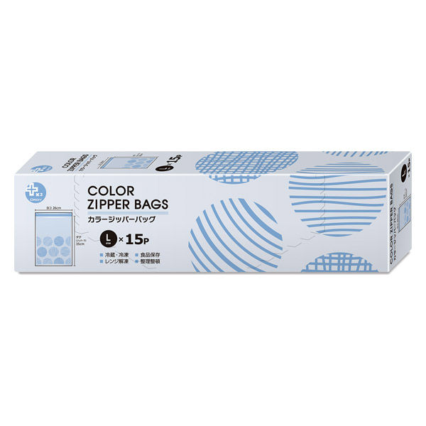 オルディ カラー ジッパーバッグ L(ブルー) 536566 1セット(15枚入)(直送品)