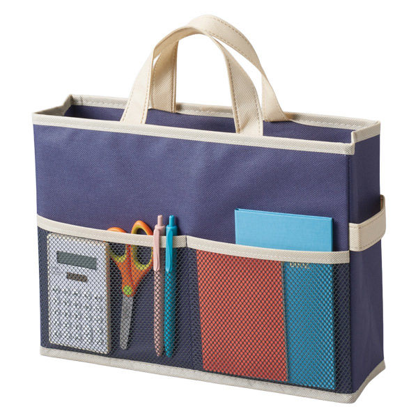 | 商品の特徴 | おうちの中の移動や片付け、このバッグがあればOK!シンプルで使いやすい収納バッグ。部屋から部屋への移動・片付けもカンタン・便利。気軽に持ち運びの普段使いとして。広めの開口部は一目で収納物が確認でき、見た目以上に収納力があります。雑誌や小物の収納に。軽くて便利、持ち運びもラクラクな収納ボックスです。厚めの素材で自立するので中に物も入れやすく、トート型で持ち運びも簡単。バッグ正面にはメッシュポケット。裏面にも便利な大き目のポケットが付いています。折りたたみ式なので、底板を入れてご使用ください。 | ||