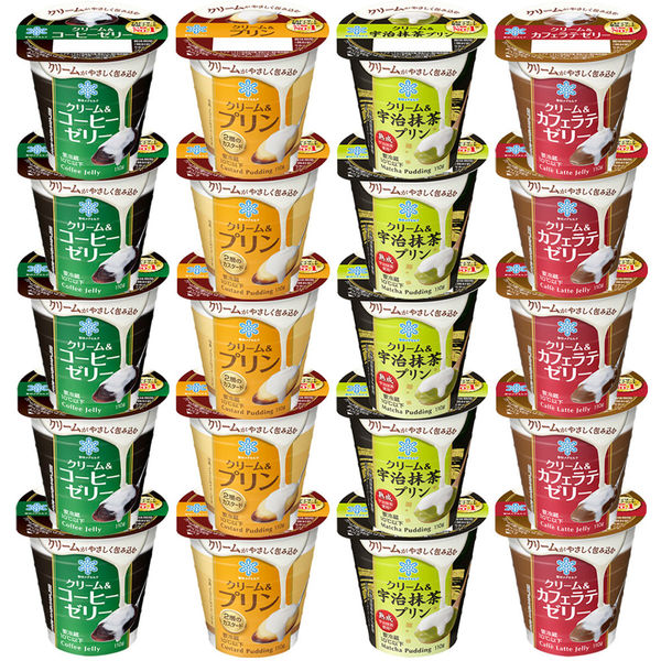[冷蔵] 雪印クリーム&コーヒーゼリー 110g/クリーム&カフェラテゼリー 110g/クリーム&宇治抹茶プリン 110g/クリーム&プリン 110gを各5個詰め合わせ