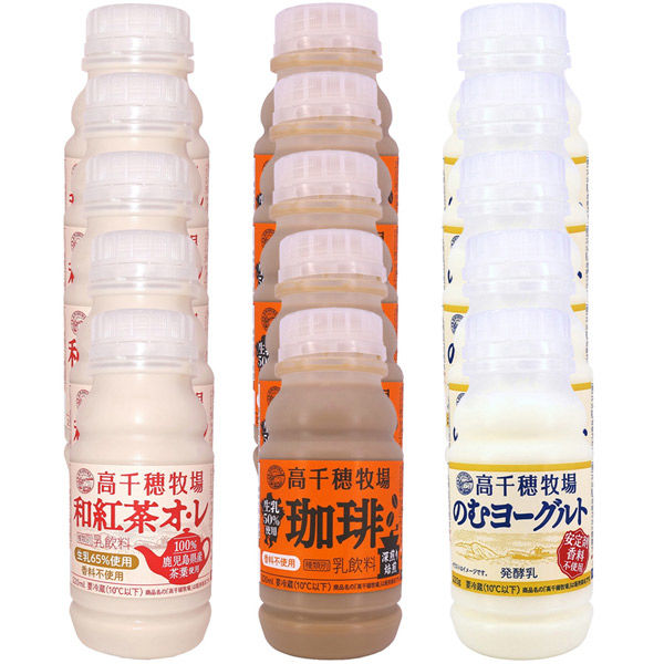 [冷蔵] 南日本酪農 高千穂牧場珈琲 220ml/のむヨーグルト 220g/和紅茶オレ 220mlを各5本 詰め合わせております。
