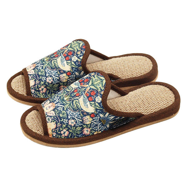 | 商品の特徴 | 人気のテキスタイルデザイナーウィリアム・モリス作の「いちご泥棒」を甲にあしらったジュートスリッパです。 | ||