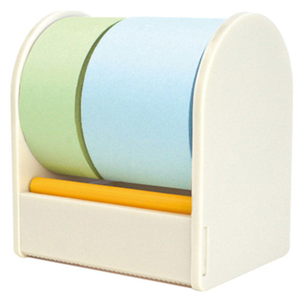 テープのような全面のりのロールふせんメモ。ディスペンサー付き。