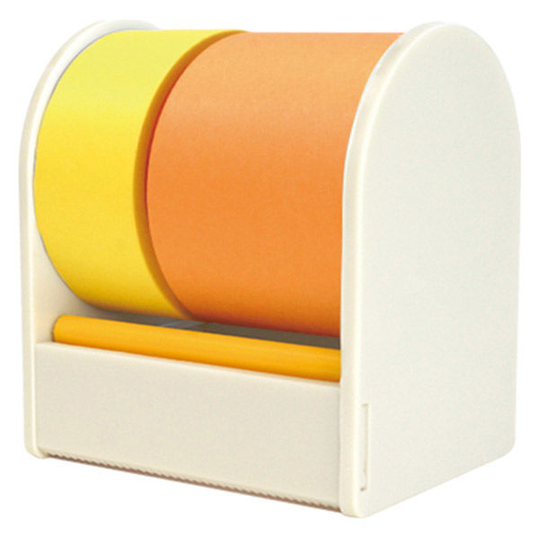 テープのような全面のりのロールふせんメモ。ディスペンサー付き。