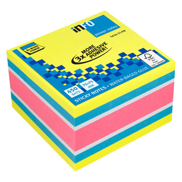 キューブ 75×75mm 4色 450枚入 ブリリアントイエロー、ブリリアントブルー、ブリリアントピンク、ホワイト 5654-51-PN(直送品)