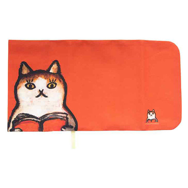 柔らかな布を使用した個性的なデザイン絵柄の「神保町にゃんこ堂」のブックカバー。