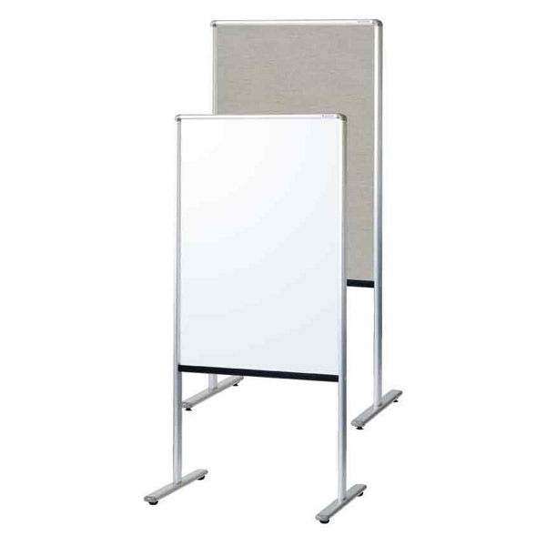 | 商品の特徴 | アジャスター付の片面がスチール製ホワイトボード、片面がピンが刺せるワンウェイタイプの掲示板です。ボードマーカー付きでホワイトボード面に書き込みしたり、マグネットで印刷物を掲示できます。もうひとつの面は、ピンなどで掲示ができます。企業・会社などで会議・研修会・イベントなどの受付や誘導のご案内などの掲示に役立ちます。 | ||