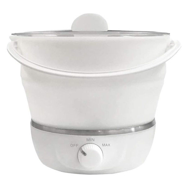 | 商品の特徴 | ●日本でも海外でも使える電圧切替式の電気調理器。 ●本体シリコン部は折りたためてコンパクトに収納可能。 ●容量800mlで1人~2人分の簡易調理に最適。 ●安全・安心の空だき防止/過熱保護機能付き。 ●全面ヒーターで素早く沸騰。 ※調理時間は入力電圧により異なります。 (参考目安)入力100V時/800ml(水のみ)/水温10℃/約12分30秒 (参考目安)入力230V時/800ml(水のみ)/水温10℃/約10分 ●電源コードは脱着式。(コード長:1m) ●持ち運びに便利な専用ポーチ付き。 | ||