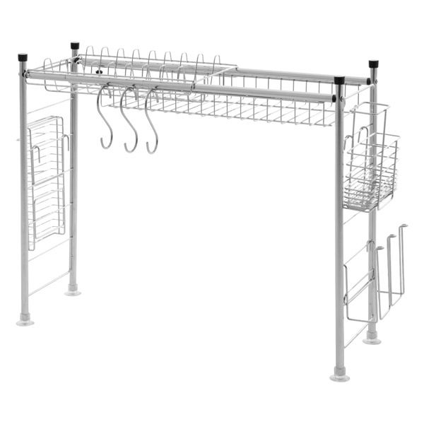 | 本体サイズ | 全体:幅56~100cm×奥行20cm×高さ47cm ディッシュスタンド:幅30cm×奥行19.5cm×高さ6.5cm S字フック:幅5cm×奥行0.35cm×高さ10.5cm カトラリーボックス:幅15cm×奥行6.5cm×高さ15cm コップラック:幅16cm×奥行7cm×高さ12.5cm 包丁スタンド:幅11cm×奥行6cm×高さ22cm | 本体重量 | (約)1.7kg |