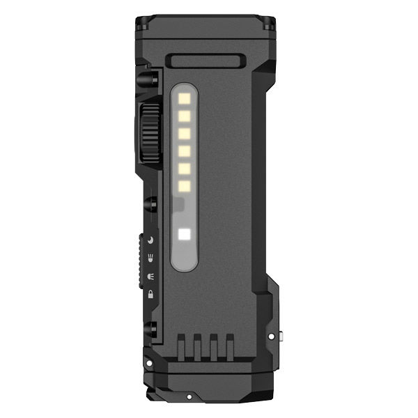 | 商品の特徴 | 高性能LEDを4つ搭載したメインライトで最大1500lmの明るさを実現したコンパクトフラッシュライトです。ワイドビームとスポットビームを同時に照射することができるので、広い視認性と長距離での精度の両方が求められる環境での使用に最適。また、サイドライトは柔らかな白色灯と7光色のRGBモードを搭載することにより、夜間の読書灯や緊急時の信号灯や点滅等などシーンに必要な照射が可能です。●IP68防塵防水性能、手軽に使用できるType-C充電の大容量バッテリーを備えたコンパクトで高性能なフラッシュライトです。 | ||