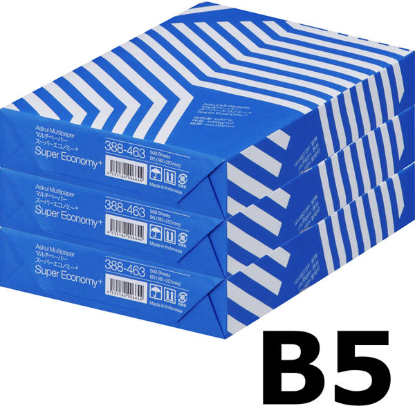 【通常価格・数量制限なし】アスクル アスクルマルチペーパースーパーエコノミーB5 1セット(1冊(500枚)×3) オリジナル