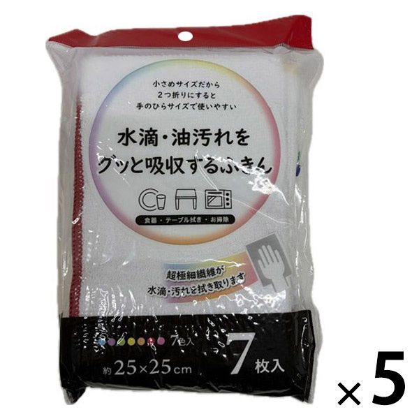 水滴・油汚れをグッと吸水するふきん 食器・テーブル拭き・お掃除 7色入 1セット(1パック(7枚入)×5)オカザキ