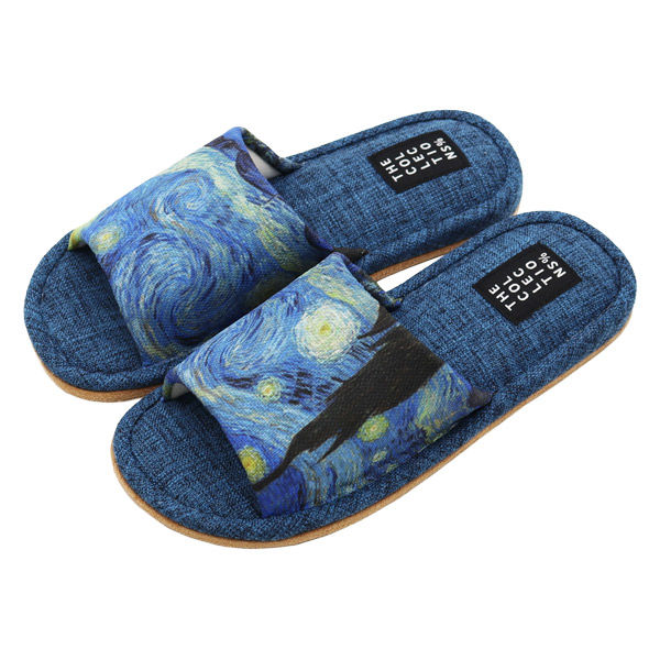 ゴッホの代表作の「星月夜」を甲部分全面にプリントしたスリッパです。