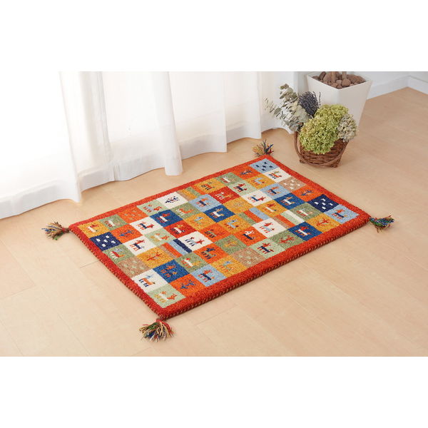 | 商品の特徴 | 丁寧な手織り手法で使用時間の経過とともに味わいが深まる「ギャッベ」。ウール素材は暖かく冬に適しているイメージがありますが、温度差の激しい環境で育った羊から取れる羊毛(ウール)は、保温性と湿度を調節する機能に優れています。夏の湿気にも適しておりオールシーズンご使用いただける素材です。しっかりとした密度&厚み約2cm。ふかふかの座り心地をお楽しみいただけます。裏面も同素材で床にやさしい仕様です。四隅にはフリンジをあしらい、愛らしさをプラスしました。 | ||