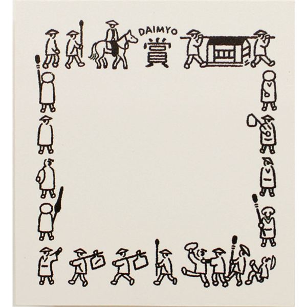 | 商品の特徴 | 参勤交代しちゃう?「大名行列」柄。相手をいたわりたいときや自分を褒めたいときに、スタンプを押して褒めるコミュニケーションをとってみましょう。75mm四方の付箋にピッタリ収まります。 | ||