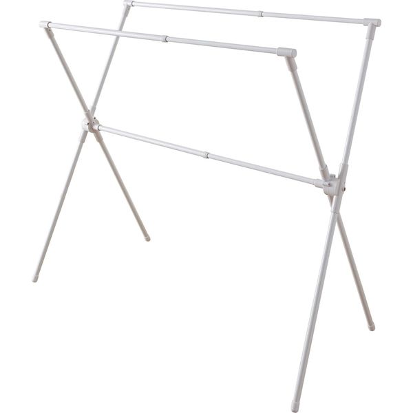 | 商品の特徴 | ●手で締めるネジもない、差し込むだけのワンタッチ組み立てで、様々なところを物干しスペースに。●横幅の伸縮自在で洗濯物をたっぷり干せて、折りたためばコンパクト。●リビングで室内干しの際も、お部屋にマッチするホワイト色。 | ||
