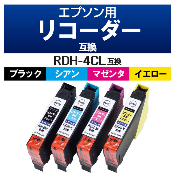 本商品:エプソン(EPSON)用 互換インク CC-ERDH-4ST リコーダーシリーズ互換 使い切りタイプ 1パック(4色入) |